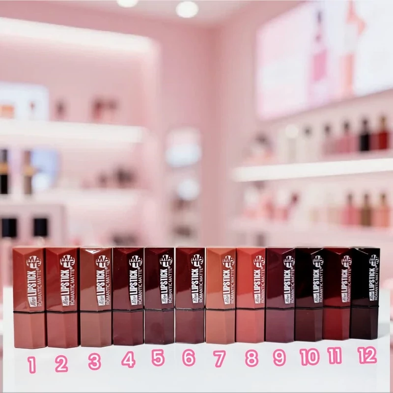 رژلب جامد لیپ استیک مات در 12 رنگ جذاب و مخملی(Lipstick)